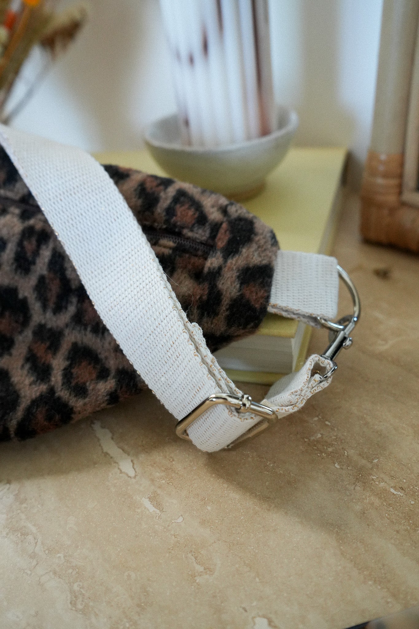 Avec "L'Astucieuse", optez pour un sac banane aussi tendance que pratique ! Fabriqué avec soin en France, à Poitiers, ce sac motif léopard allie style, confort et fonctionnalité, pour une touche d'originalité à chaque sortie.